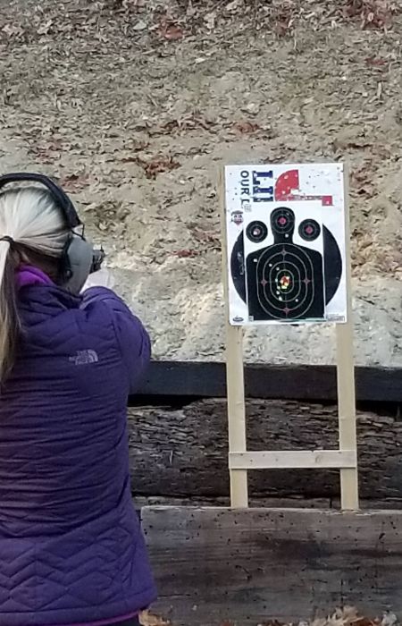 Range instruction time is at an outdoor local range, so dress accordingly. Be sure to wear closed toed shoes, have a brimmed hat, wear eye and ear protection. (If you don't have any, Alice will provide them). When we go to fire at the range, you will first fire at 10'. After firing your first three rounds of ammunition, you will be challenged to fire 5 rounds in each of 4 circles at 10' (ten feet). There is no time limit on this certification challenge. Be sure to bring 50 rounds of ammunition with your favorite handgun to do this. After you qualify at 10', you may choose to qualify at 15' or 20' using your remaining ammunition. If you do not own a handgun, one may be provided by the instructor for an additional ammunition fee.